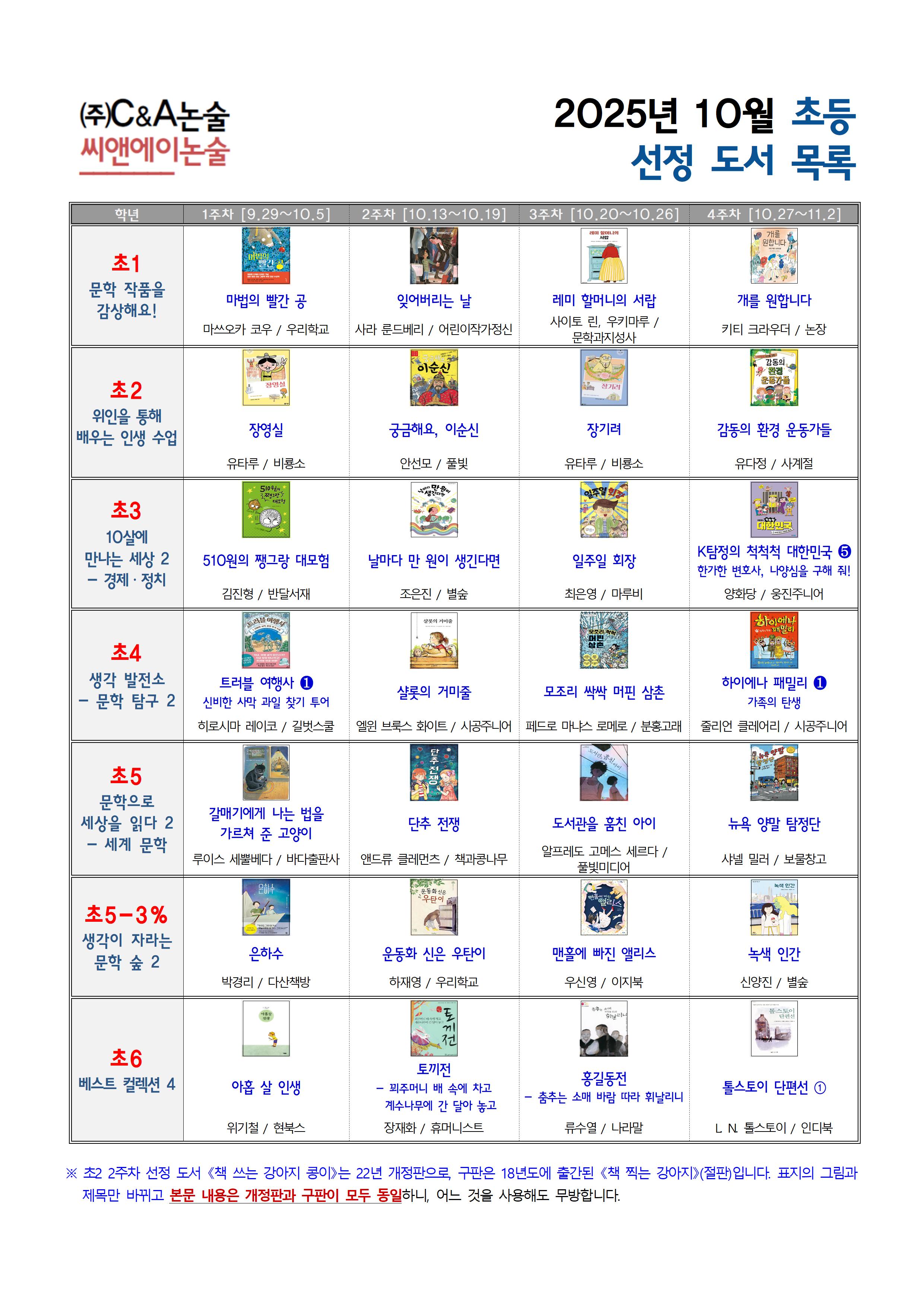 2025년 10월 초등부 선정 도서 및 학습 계획서