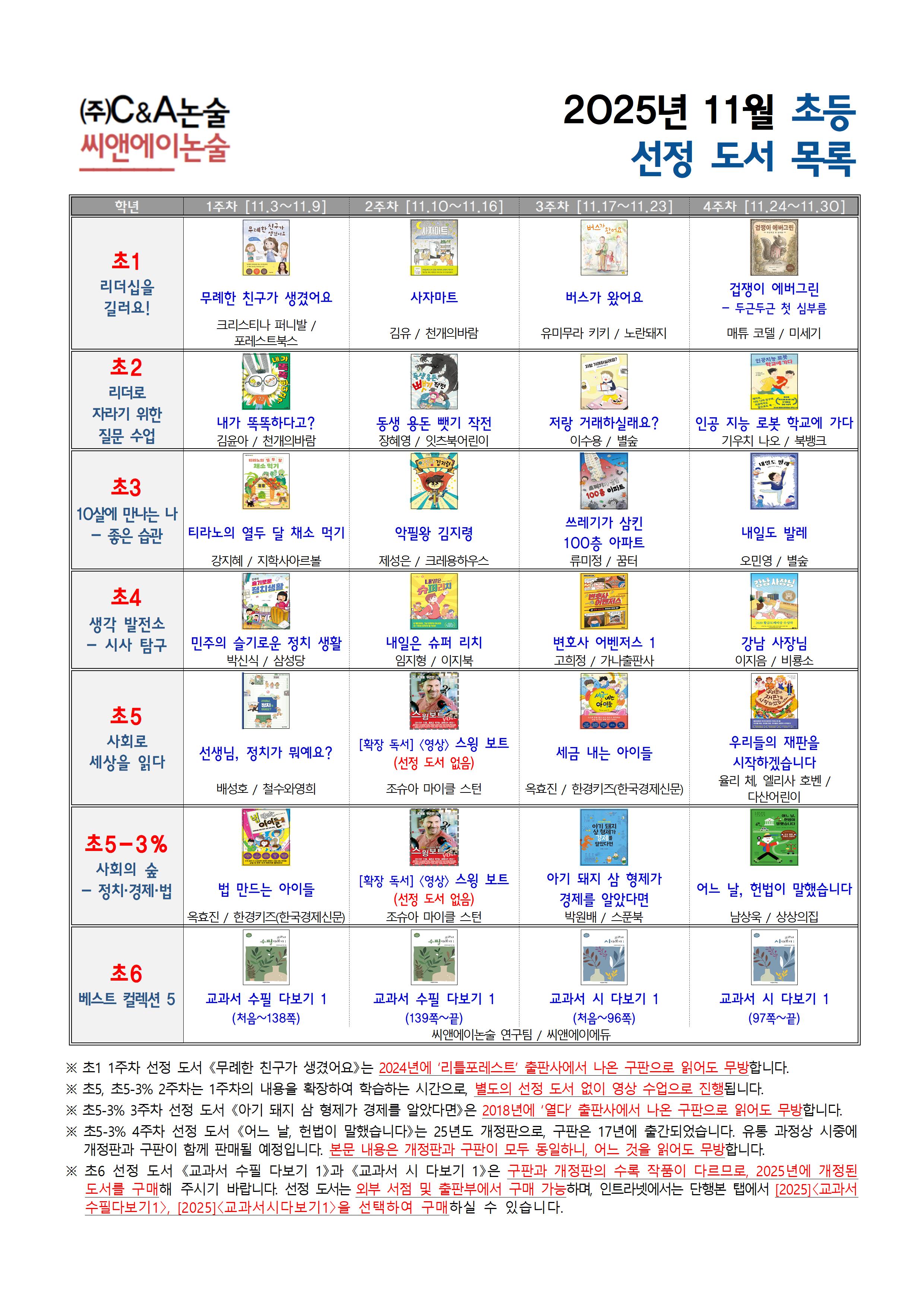2025년 11월 초등부 선정 도서 및 학습 계획서