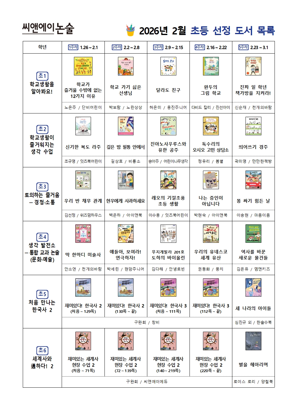 2026년 2월 초등부 선정 도서 및 학습 계획서