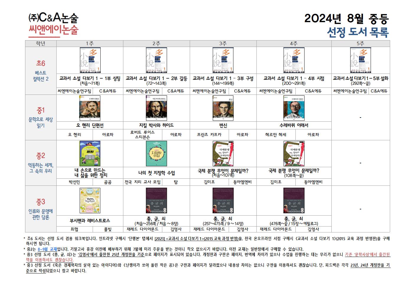 2024년 8월 중등부 선정 도서 및 학습 계획서