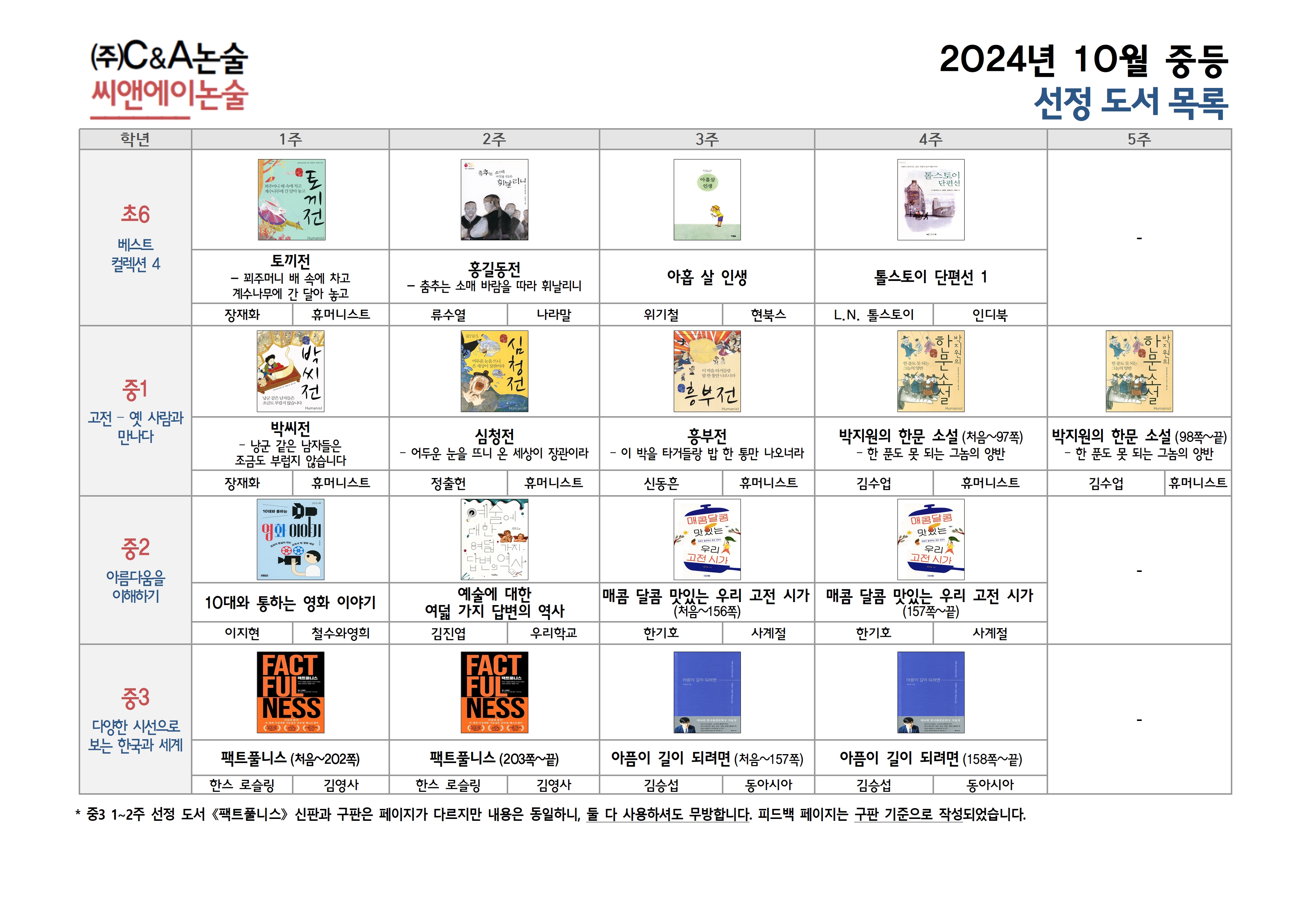 2024년 10월 중등부 선정 도서 및 학습 계획서